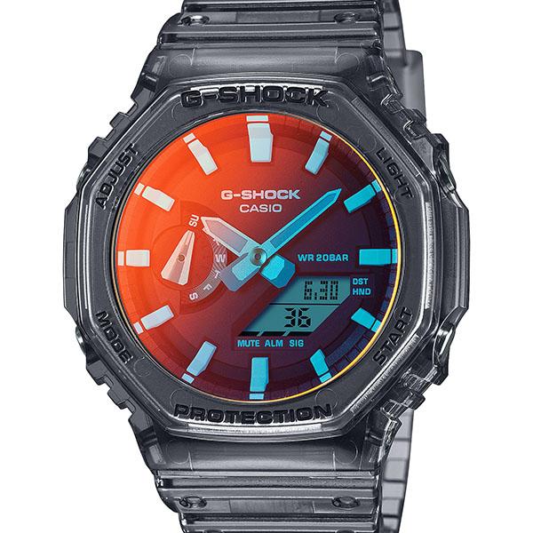 Manufacturer: CASIO G-SHOCK Product Name: GA-2100TLS-8AJF JAN Code: 4549526378027 Dimensions (H x W x D): 48.5 x 45.4 x 11.8 mm Weight: 51 kg Band: 145-215 mm Watch Module No. (1): 5611 Specs: Water Resistant to 20 ATM, Shock Resistant, High-Brightness LED Light, Beach Time Lapse Release Date: June 21, 2024